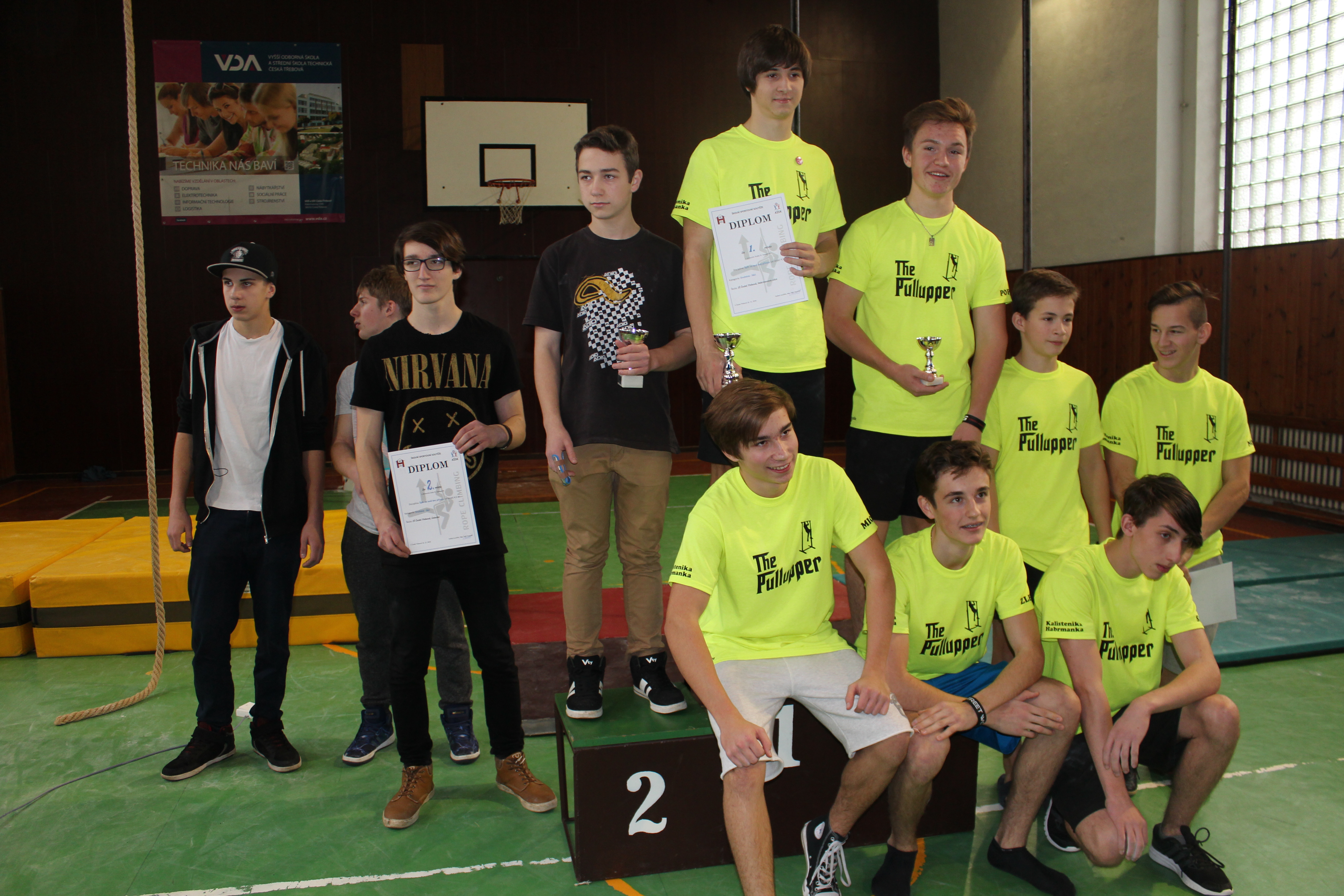 Je tomu dnes sice již měsíc, co se toto klání odehrálo, tedy 16. 12. 2016, nic to ale nemění na tom, že se evidentně povedlo. Pořadatelé sice na základních školách zařazují šplh na tyči pro dívky a pro chlapce šplh na laně bez přírazu nohou, ovšem ze stoje. Nicméně i tak si našel šplh na laně dle regulí Olympijského Šplhu své místo, a tak se šplhalo tímto způsobem alespoň doplňkově. Aby se borci mohli před svými fanynkami náležitě předvést, soutěžilo se ještě doplňkově na zbrusu nové přenosné hrazdě, kde závodníci dosahovali i 20 poctivých shybů.
